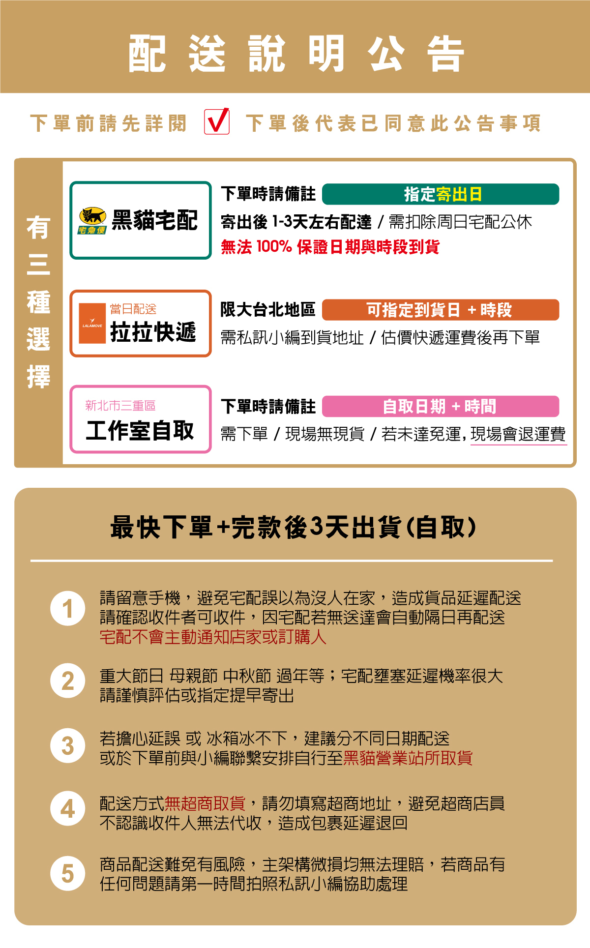 【⚠宅配重要公告⚠ 貨量龐大無法保證指定日期配達】